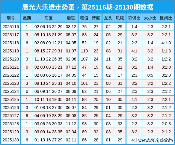 大乐透第25130期前区奖号为:01 13 16 27 29;后区02 11。前区号码质合比为3:2,奇偶比为4:1,三区比为1:2:2。
